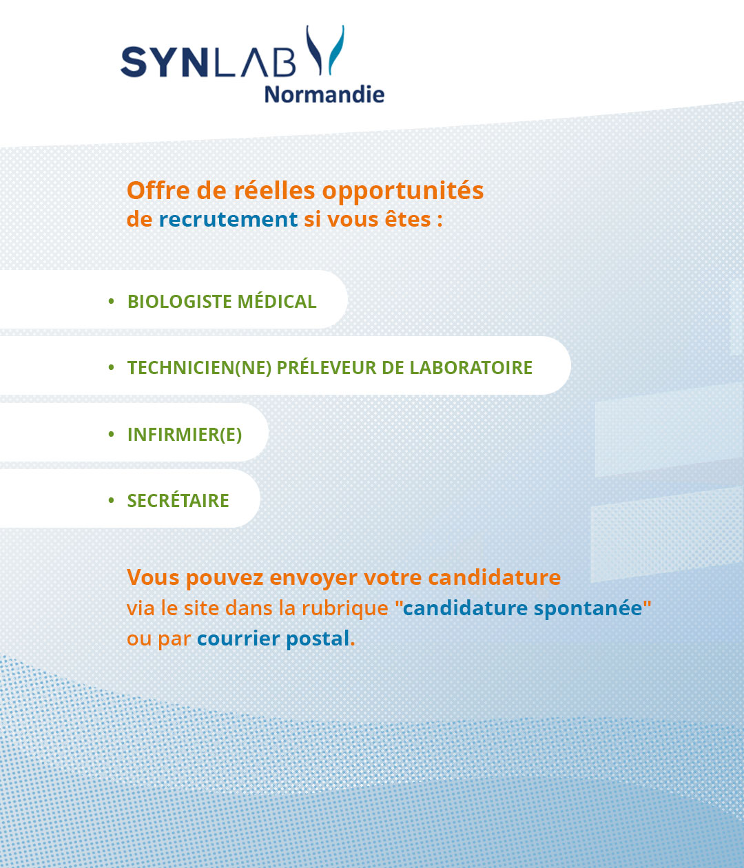 LBM SYNLAB Normandie est un groupement constitué de 10 laboratoires d'analyses médicales implantés sur un axe nord-sud allant de Rouen à Vernon